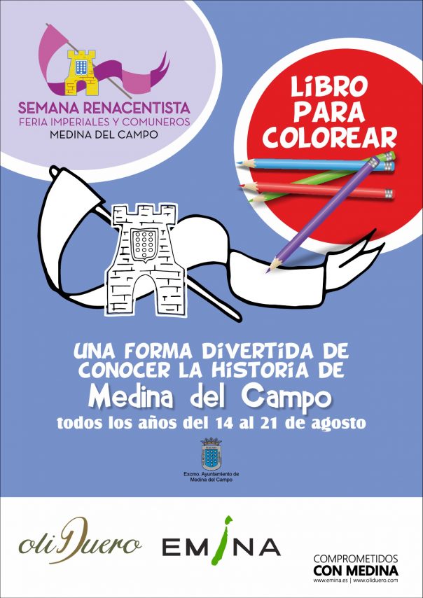 A partir del próximo lunes 24 de Julio estará disponible en el Servicio de Desarrollo Local del Ayuntamiento de Medina del Campo el libro de la Semana Renacentista para colorear con textos en inglés para niños.